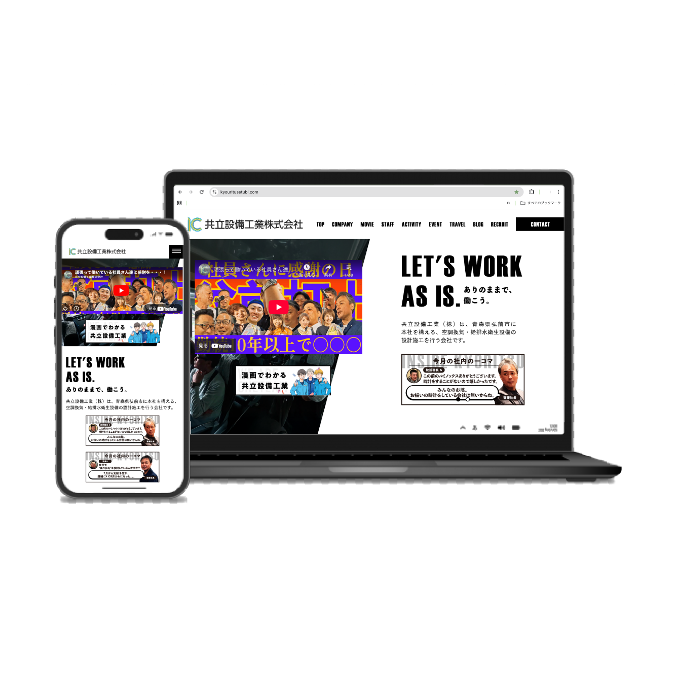 共立設備工業株式会社様のホームページをリニューアル。遊びも仕事も全力で楽しむ会社の志を表現。オープニング動画も弊社にて作成。